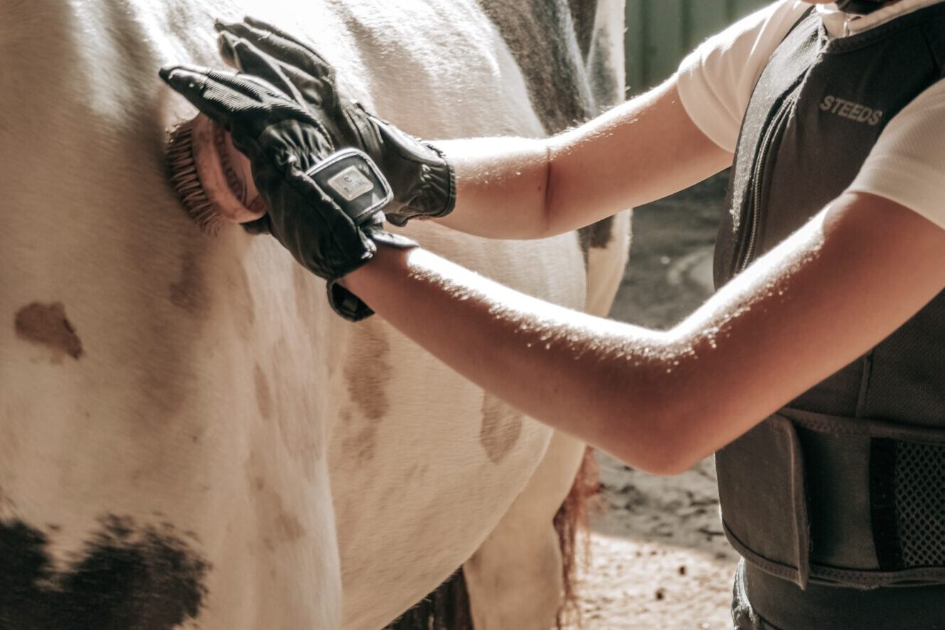 Ein besonderer Bestandteil der Therapie ist das Putzen des Pferdes. Es stärkt nicht nur die Beziehung zum Tier, sondern unterstützt gezielt die Rumpfstabilität, die Hand-Augen- sowie Hand-Hand-Koordination. Die Motivation, das Pferd zu pflegen, führt oft zu ausdauernden und gezielten Bewegungen, wodurch auch Schulterbeweglichkeit und Armfunktionen nachhaltig verbessert werden können.
